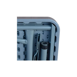 El tablero está fabricado en polietileno de alta densidad (HDPE), un material duradero, ligero y fácil de limpiar, mientras que su estructura cuenta con patas de acero lacado con revestimiento antióxido, garantizando una larga vida útil incluso en entornos exigentes.