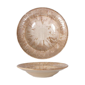 La Vajilla Barroco en color crema de Bonna destaca por la singularidad de cada una de sus piezas. Su acabado se consigue mediante el uso de barnices especiales que reaccionan durante la cocción a altas temperaturas, dando como resultado una colección con variaciones únicas en cada elemento.