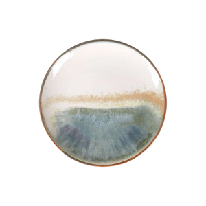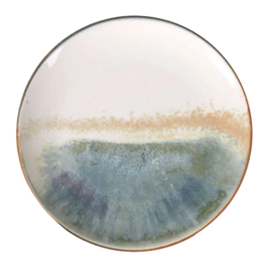 Cada pieza está elaborada en porcelana de alta calidad y muestra un diseño dividido en dos mitades: una de ellas presenta una veta en tono arena, mientras que la otra incorpora una franja con matices verdes y azules que aportan profundidad y originalidad. El resultado es una colección que potencia la creatividad y da protagonismo a los colores y texturas de tus platos.